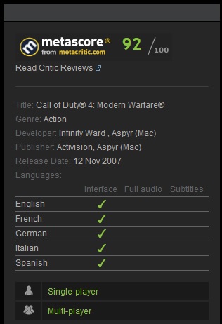 Неповторимая сетевая игра - Мультиплеер серии берет свое начало еще с успеха Call of Duty 2, вовлекая все новых игроков в свои эпические онлайн баталии. Система создания классов, позволяющая собрать собственный арсенал, очки опыта, открывающие заблокированные оружия и умения, система создания матчей и таблицы лидеров, Call of Duty 4: Modern Warfare дает игроку все, чтобы насладиться легкодоступной и интересной игрой