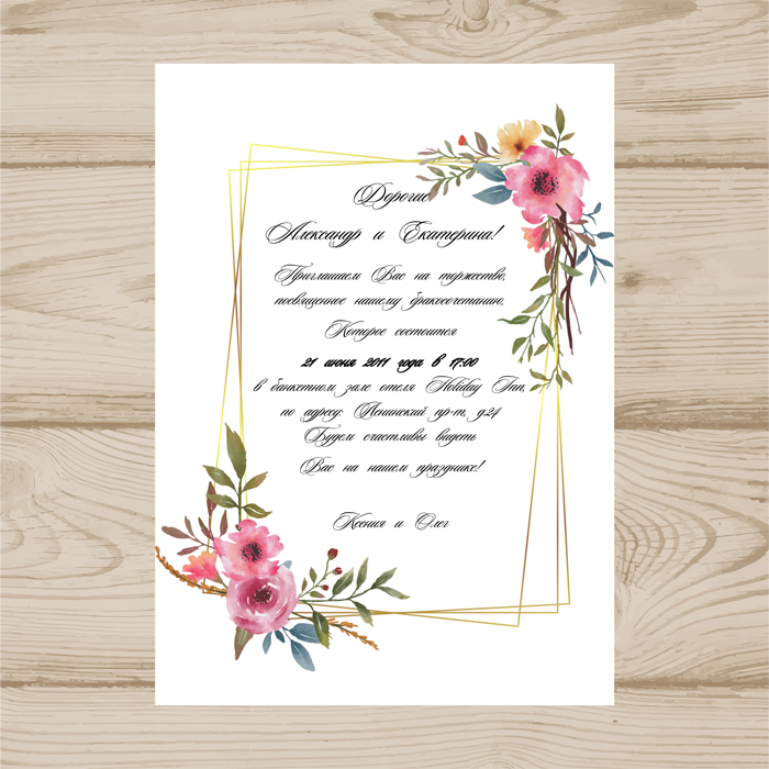 Макет приглашения был сделан в размере А4 (210х297 мм),Вы легко можете изменить размер на свой.