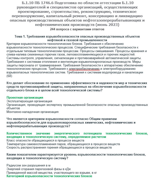 Вопросы с ответами к курсам ОКС-Олимп Б.1.10 ПБ 1746.6 (июнь 2023) Подготовка по области аттестации Б.1.10 руководителей и специалистов организаций, осуществляющих проектирование, строительство, реконструкцию, техническое перевооружение, капитальный ремонт, консервацию и ликвидацию опасных производственных объектов нефтегазоперерабатывающих и нефтехимических производств
