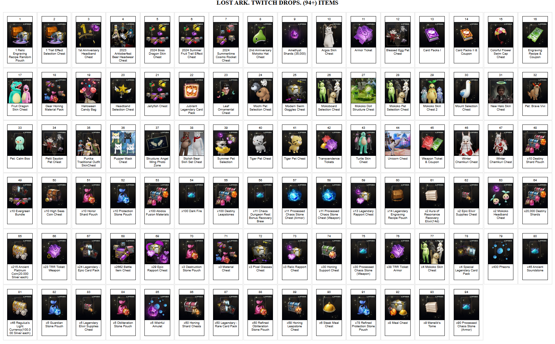получить, перечисленные ниже предметы, в игре Lost Ark + инструкцию.