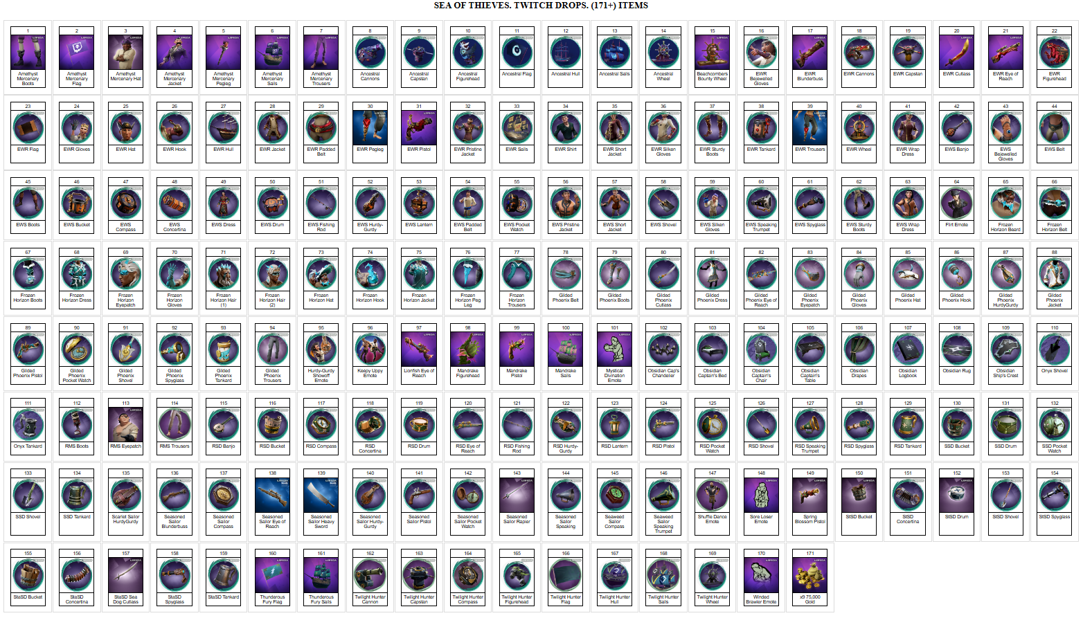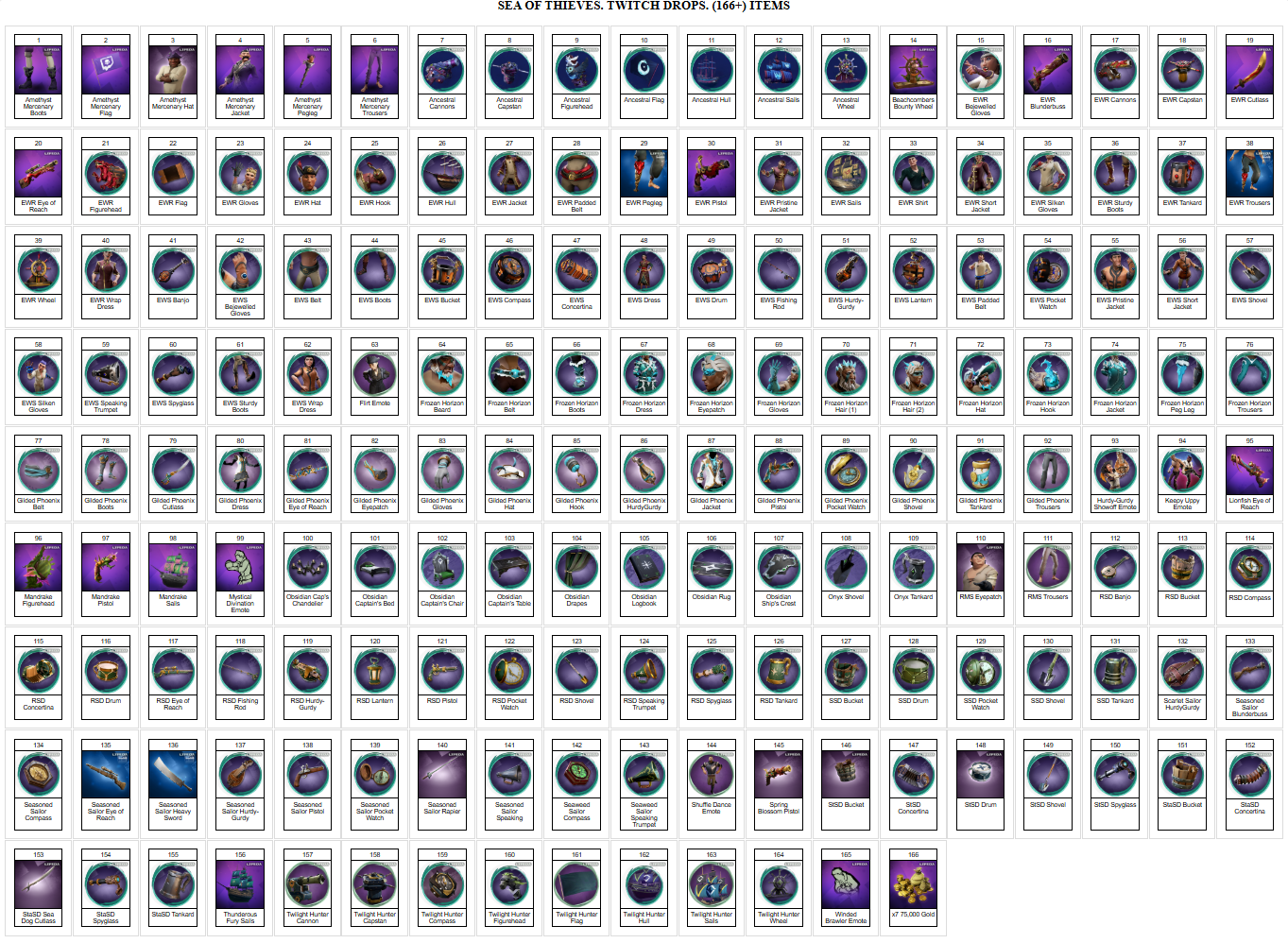 получить перечисленные ниже предметы в игре Sea of Thieves + инструкцию.