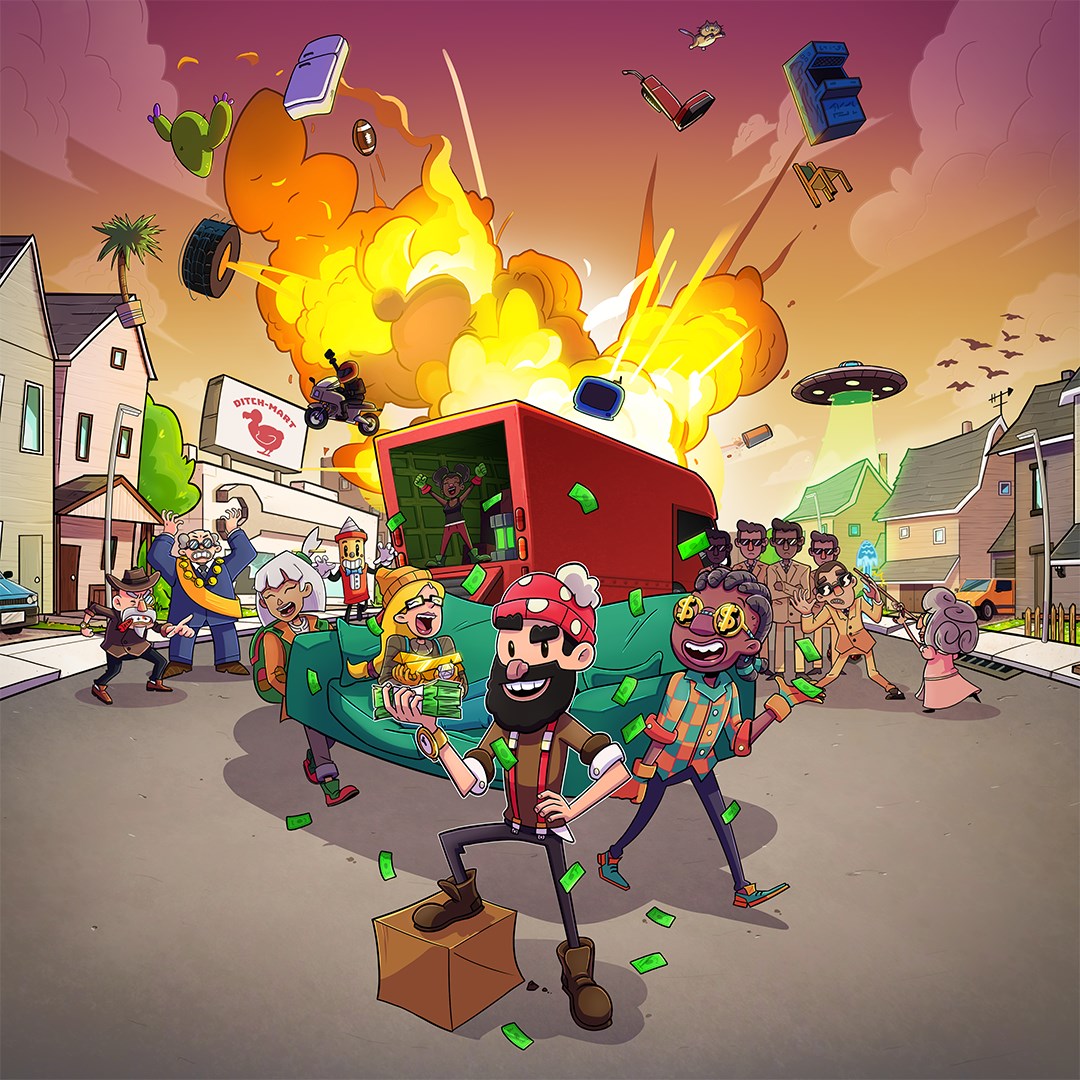 With little time and even less caution, your ragtag removals team gets to work rapidly relocating the entire town… leaving a trail of destruction, explosions, and debris in your wake!