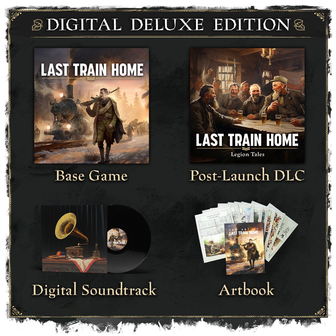 Откройте для себя полную историю легионеров, приобретя издание «Last Train Home Digital Deluxe Edition»: в нем вас ждут большое дополнение «Last Train Home - Legion Tales», цифровой артбук и саундтрек игры.