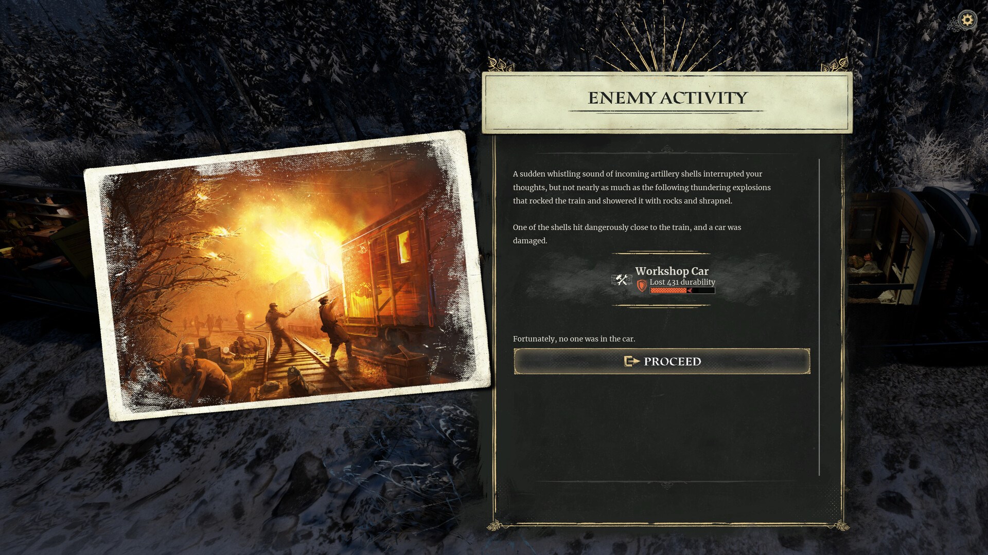 УПРАВЛЯЙТЕ ЭКИПАЖЕМ ПОЕЗДА: назначайте солдат в поезде на небоевые специальности, мастерите предметы, лечите раненых и не забывайте восстанавливать боевой дух солдат в этом долгом путешествии.