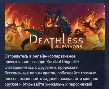 Отправьтесь в онлайн-кооперативное приключение в жанре Survival Roguelite. Объединяйтесь с друзьями, прорежьте бесконечные волны врагов, побеждайте грозных боссов, выполняйте задания, создавайте мощное оружие и открывайте уникальных персонажей!