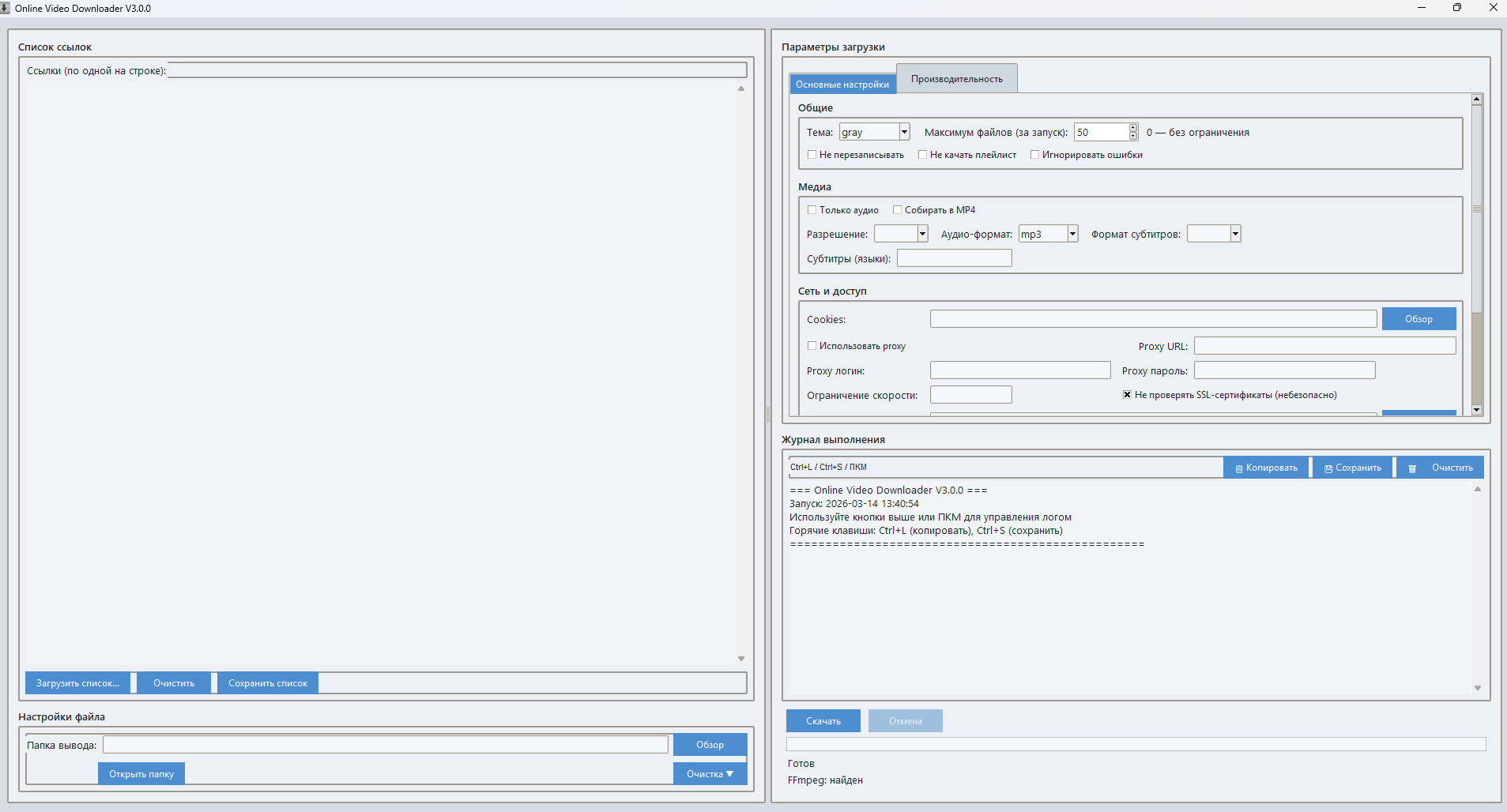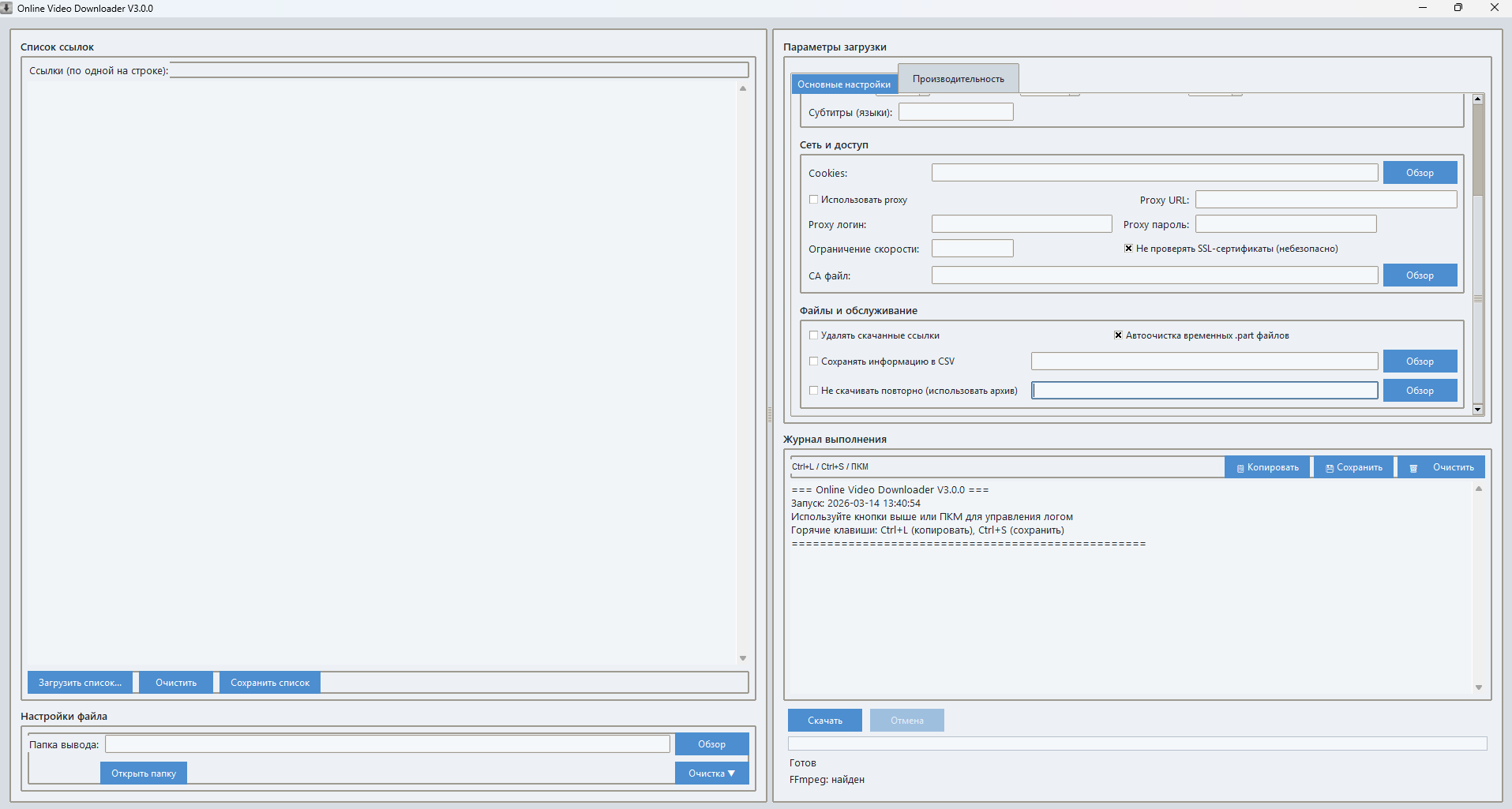 💡 Совет: Используйте режим «Загрузить из файла», чтобы обрабатывать смешанные ссылки (ВК + Rutube + YouTube в одном списке)!