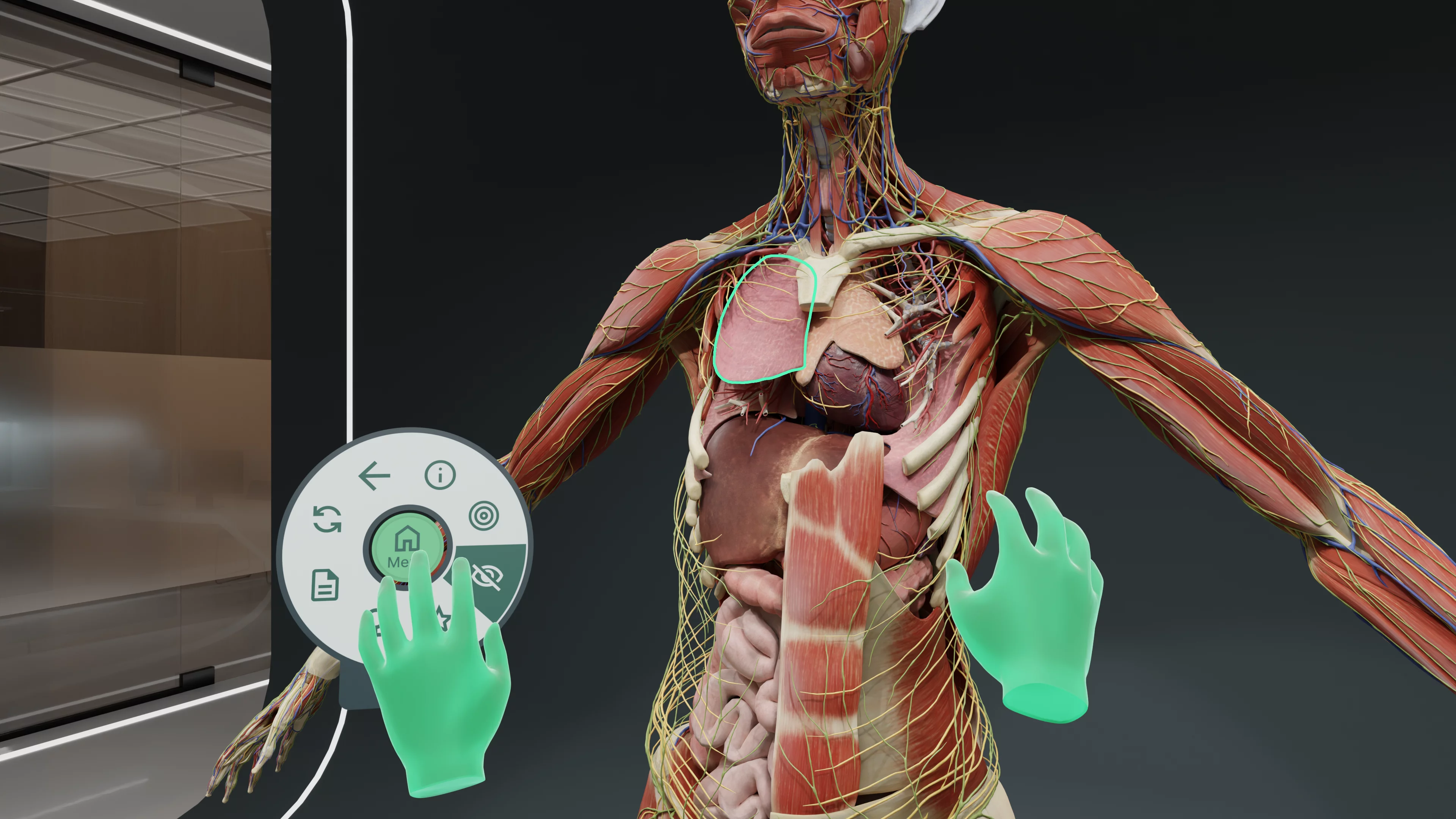 Погружение в 3D-обучение: просматривайте все анатомические структуры в масштабе 1:1 в виртуальной реальности для настоящего ощущения пространства и глубокого понимания.
