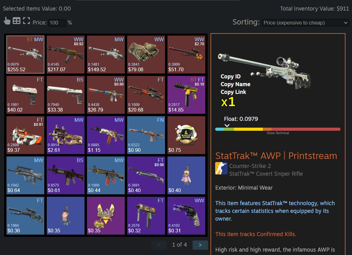 ✔️ 100% инвентарь будет от 910$ (75 000 рублей). Стоимость может отличаться на несколько, в большую или меньшую сторону, из за курса валют и торговой площадки Steam.