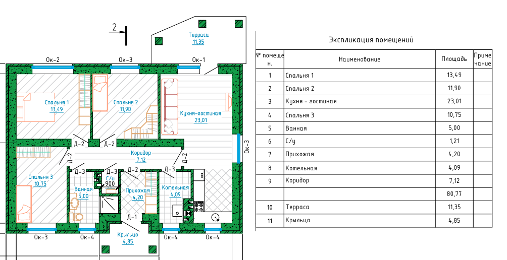 Проект дома 80м2. , 12.5 на 9 метров. Комфортный для жизни одноэтажный дом, подходит для постоянного проживания семьи из 3-4 человек. Стены выполнены из газобетона D500-400мм. Снаружи можно применить облицовочный кирпич как в проекте или фасадную штукатурку. Дом строится достаточно быстро не требует высокой квалификации, нужно просто брать и делать. Главное решится и все получится! Нет ничего сложного!