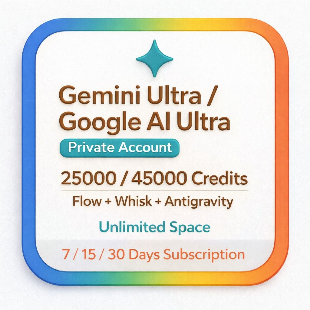 Gemini Ultra + Veo 3.1 + Flow + Whisk + Nono Banana + Antigravity | 25,000 кредитов | 30 дней + Безлимитное хранилище Google Drive