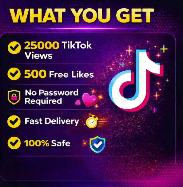 Вы получите 25 000 просмотров в TikTok плюс 500 бесплатных лайков, что повысит видимость вашего видео и привлечет больше внимания.