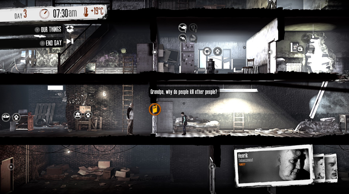 This War of Mine: The Little Ones позволит взглянуть на войну не глазами элитного солдата, а с точки зрения группы гражданских лиц, пытающихся выжить. Постоянная нехватка еды, минимум медикаментов или их отсутствие и грозящая извне опасность - игрокам придется принимать судьбоносные решения, чтобы прожить еще один день.