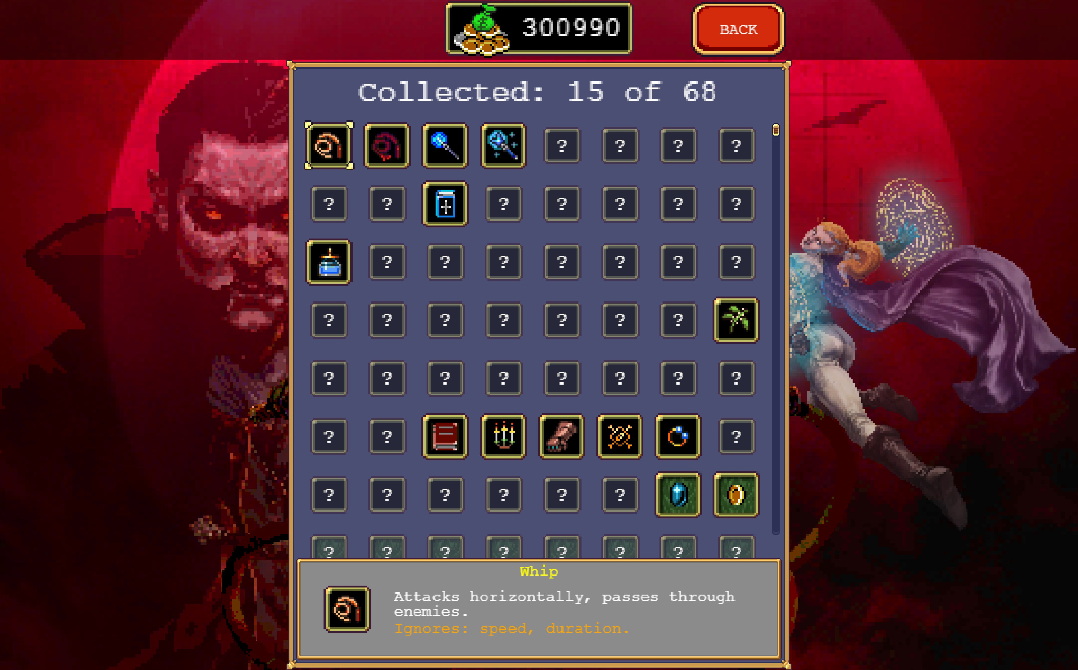 Vampire Survivors — это готическая казуальная игра в стиле хоррор с элементами rogue-lite, в которой ваши решения могут позволить вам быстро набрать силу и противостоять сотням монстров, которые нападают на вас.