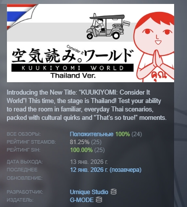 Introducing the New Title: “KUUKIYOMI: Consider It World”! This time, the stage is Thailand! Test your ability to read the room in familiar, everyday Thai scenarios, packed with cultural quirks and “That’s so true!” moments.