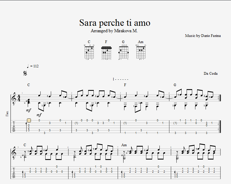 Аранжировка для шестиструнной гитары от Марины Мираковой на композицию "Sarà perché ti amo" группы "Ricchi e Poveri". Композитор Dario Farino.