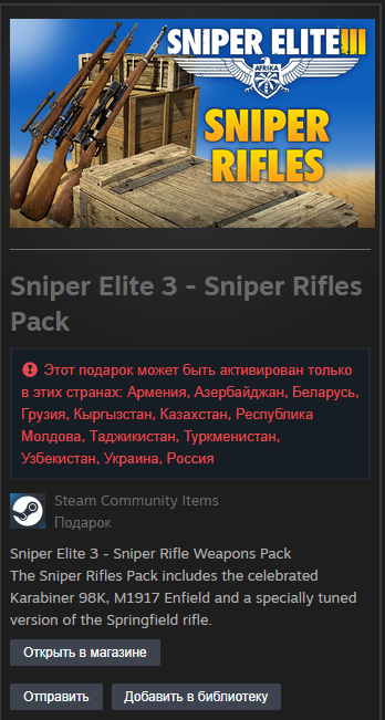 Sniper Elite 3 - Sniper Rifles Pack DLC Steam Gift RU/CIS в STEAM