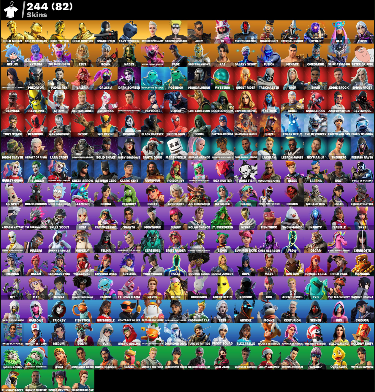 ✅ Аккаунт будет содержать 244 скина + 100 VB.