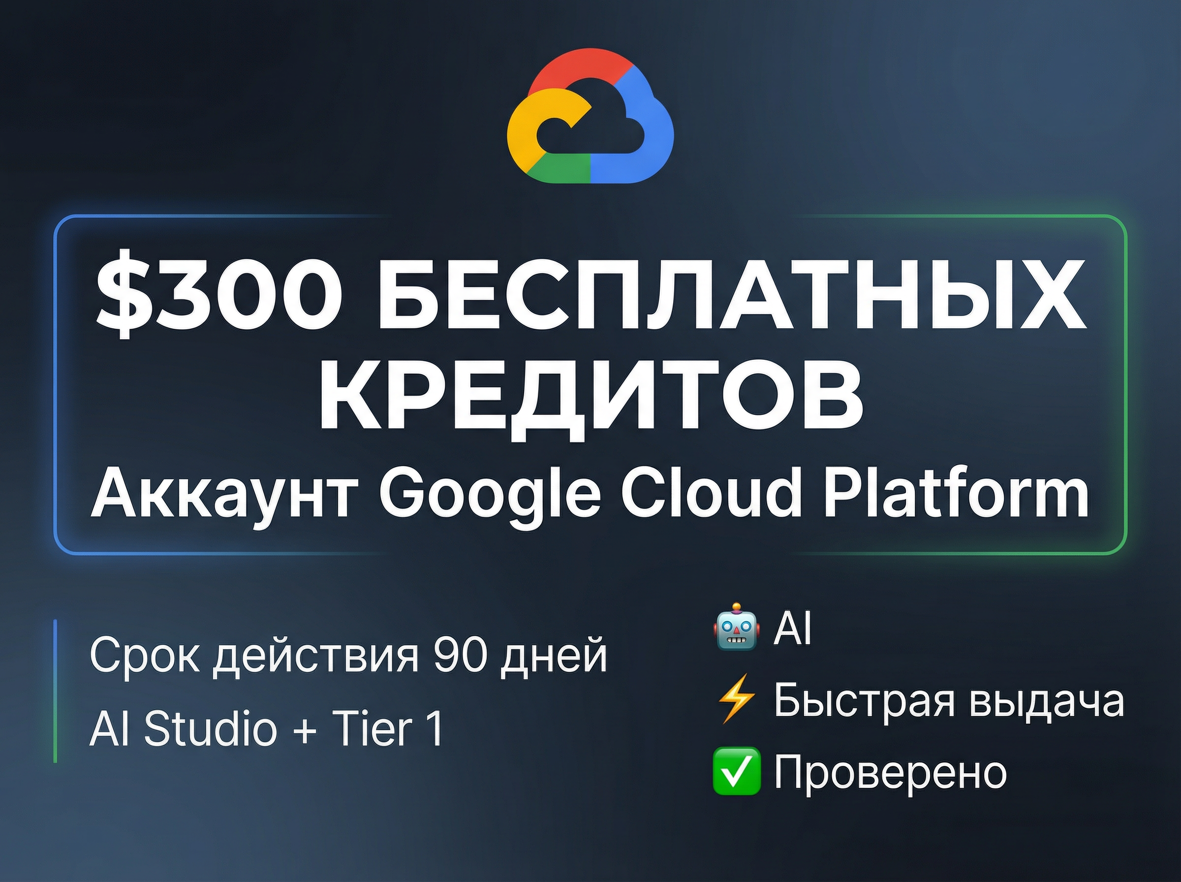 - Полный баланс $300 на счету GCP