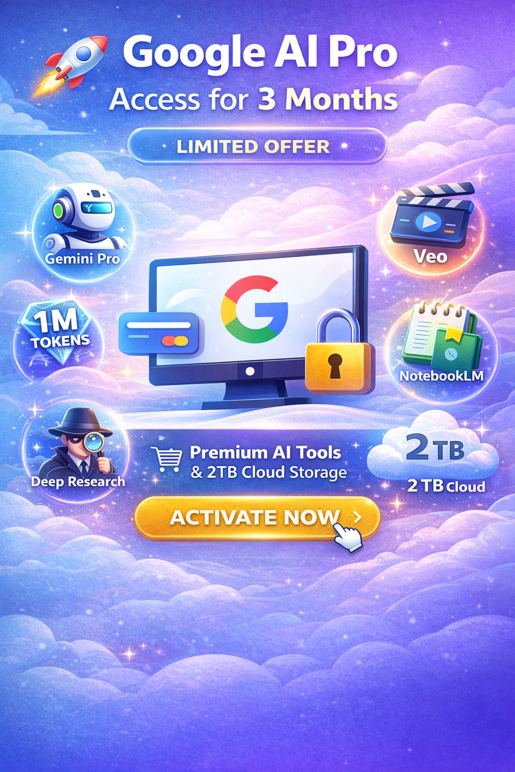🚀 Google AI Pro — доступ на 3 месяца