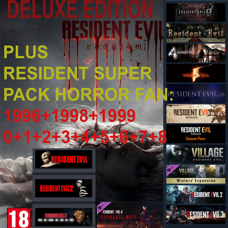 RESIDENT EVIL REQUIEM DELUXE + PLUS RESIDENT EVIL RELOAD COLLECTION EXTRA SUPER PACK FAN включает: