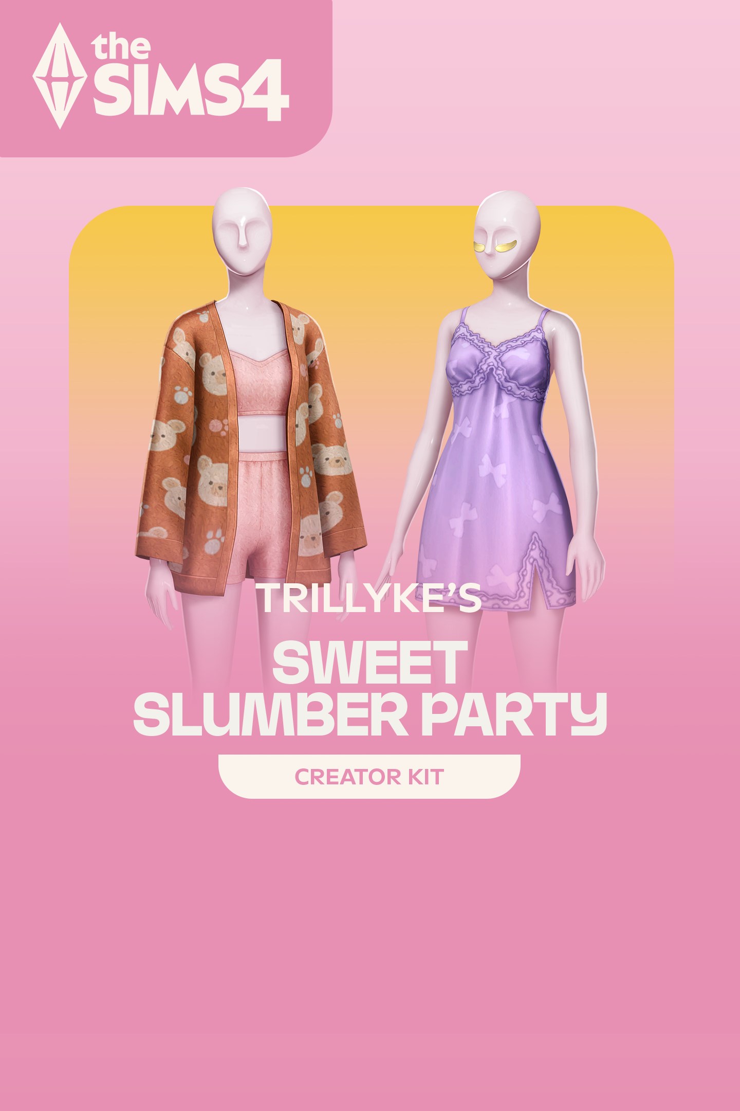 Выглядите на все сто даже на пижамной вечеринке с комплектом «The Sims 4 Пижамная вечеринка»*. Благодаря пастельным тонам, мягким материалам, а также очаровательным узорам и фасонам вы словно окажетесь во сне. И не забудьте про милые узоры для ногтей, пушистые носки, тапочки и средства для ухода за кожей. Автор комплекта — Trillyke.