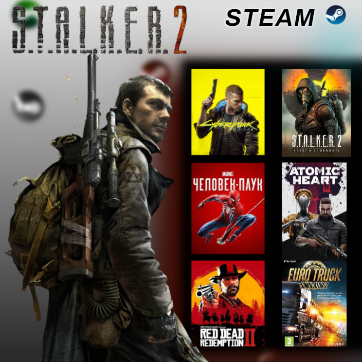 На аккаунте так же присутствуют 🌐7 Days to Die, Cyberpunk 2077, Half-Life Alyx, STALKER 2 Heart of Chornobyl, Last of us 1 и 2, Ведьмак 3 Дикая Охота, Atomic Heart, BuckShot Roulette, Dying Light, Dying Light 2, Dying Light The Beast, Elden Ring, Euro Truck Simulator 2, Marvel Spider-Man Remastered, Metro 2033, Metro Exodus Enchanced, Outlast, Outlast 2, Project Zomboid, Resident Evil 7 Biazard, Sons of the Forest, Teardown, Terraria, The Forest, The Walking Dead, Tomb Raider,🌐