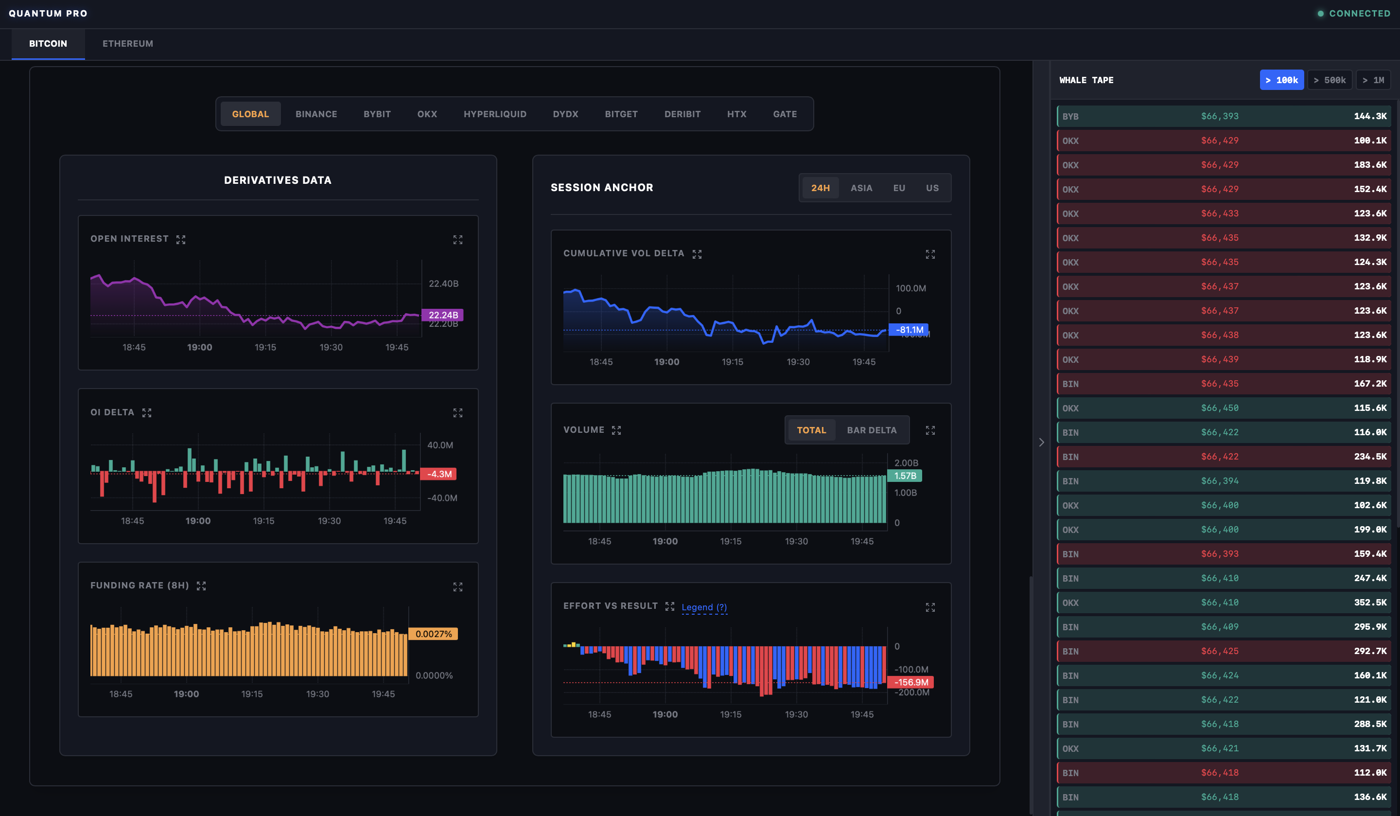 В трейдинге побеждает тот, кто видит больше и реагирует быстрее. Quantum Terminal Pro — это профессиональная аналитическая веб-платформа, которая собирает, очищает и визуализирует данные с 9 ключевых криптовалютных бирж (Binance, Bybit, OKX, Bitget, Deribit, Hyperliquid, dYdX, HTX, Gate.io) по BTC и ETH. Мы переводим сложный рыночный шум в четкие визуальные сигналы.