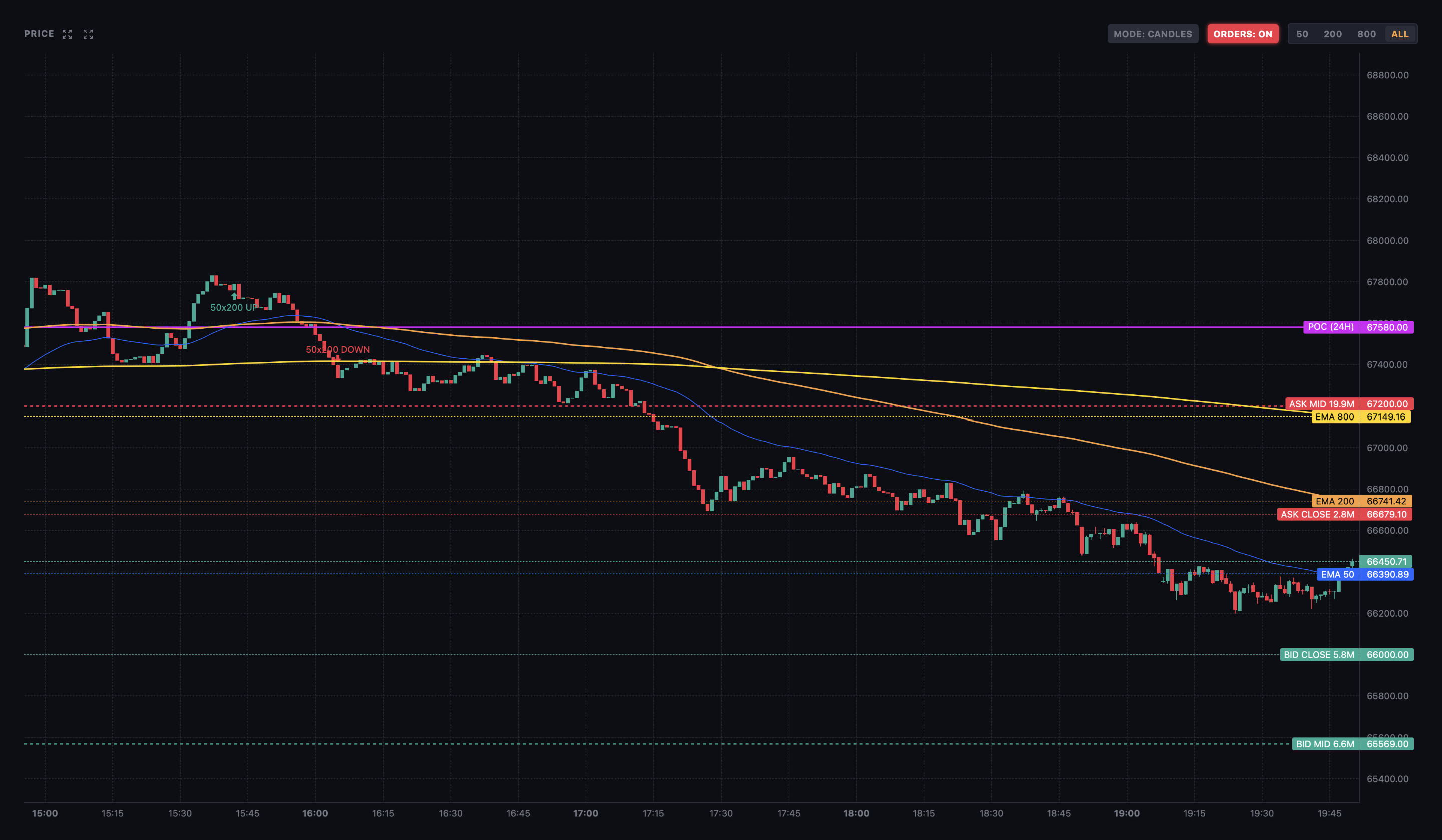 * Лимитные стены (Bid/Ask Walls): Мы сканируем глубину стаканов на биржах и выводим прямо на график экстремально крупные лимитные ордера. Вы заранее видите «стены», от которых цена с высокой вероятностью отскочит, так как именно там маркетмейкеры защищают свои позиции.