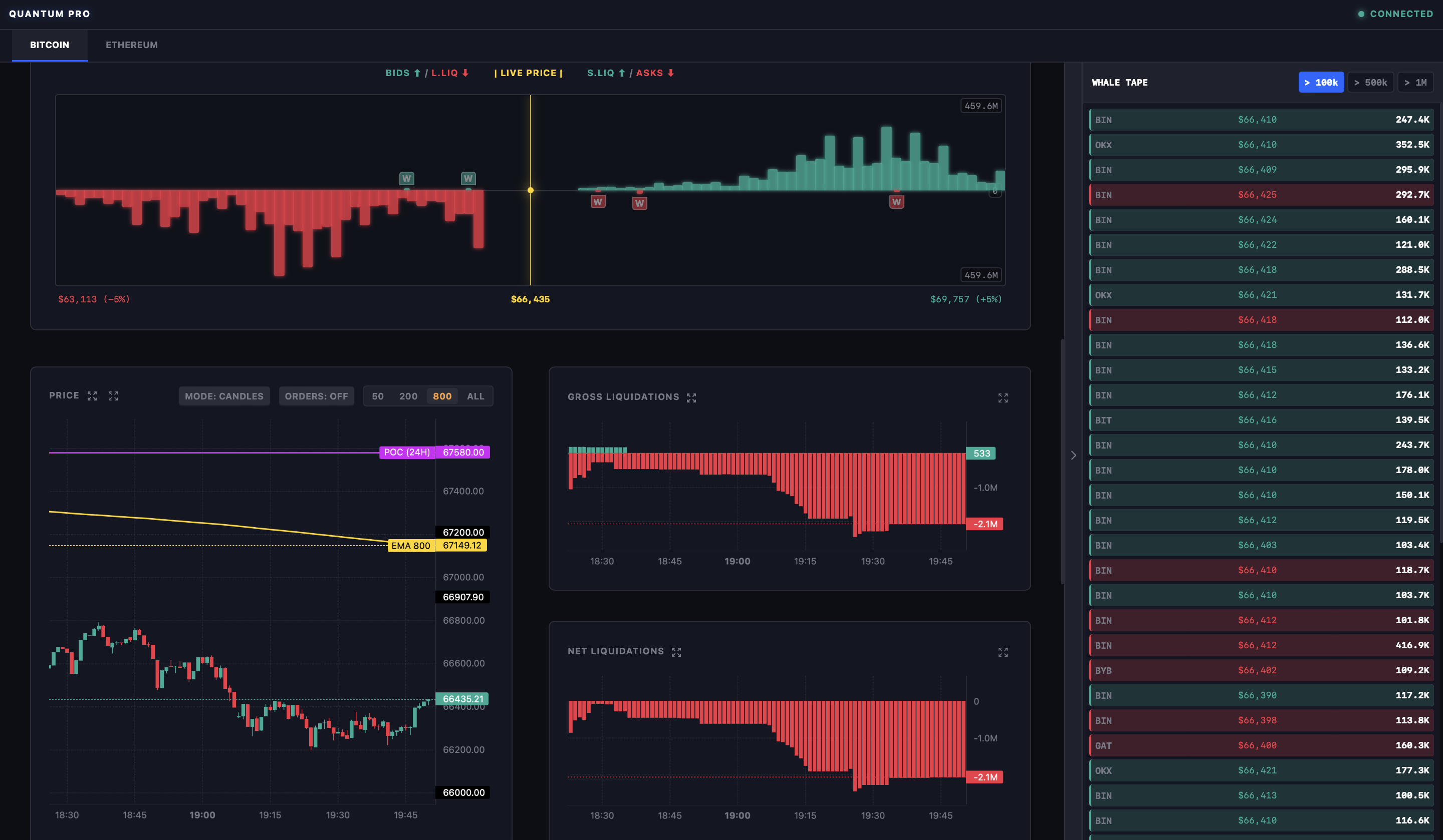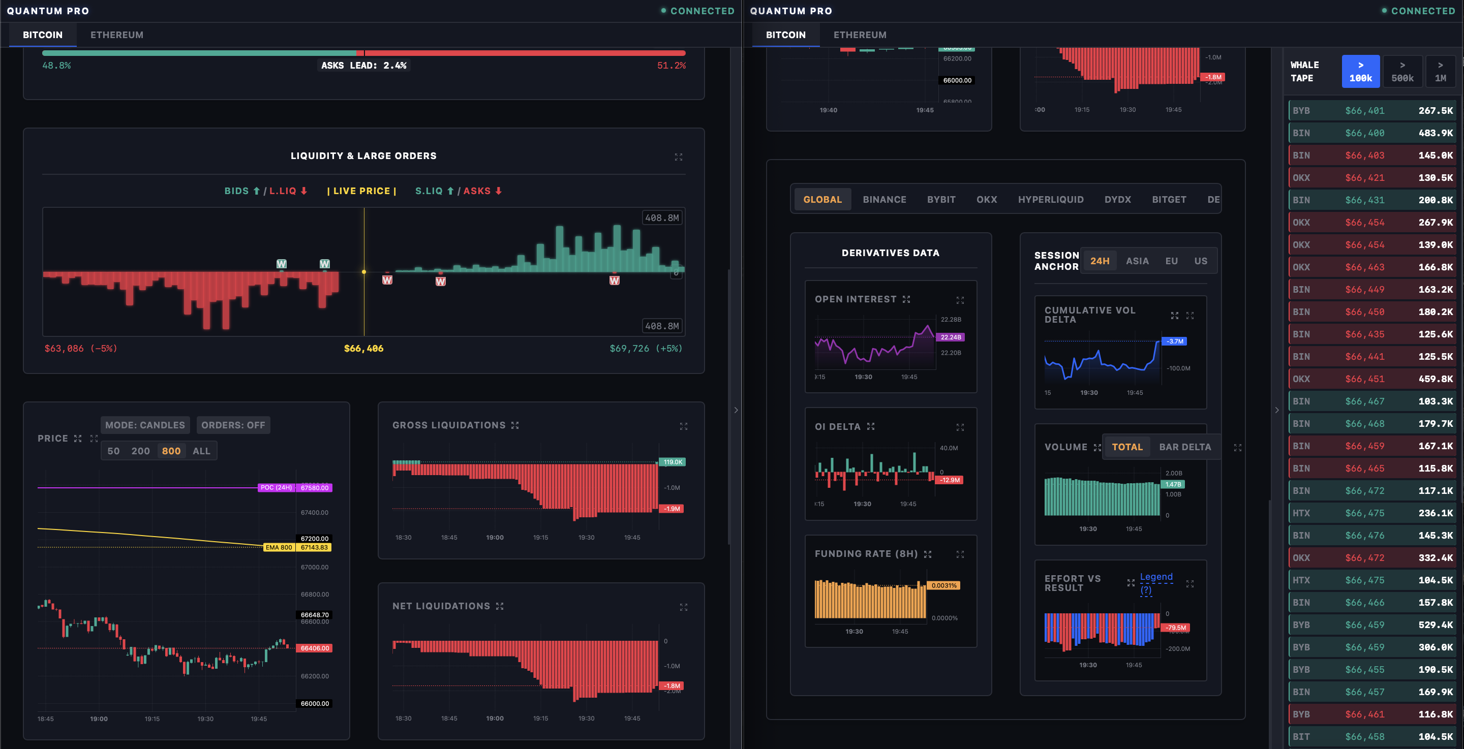 * Продвинутый трекинг китов (Whale Tape): Интеллектуальная лента сделок, фильтрующая рыночный шум и показывающая только агрессивные вливания объемов.