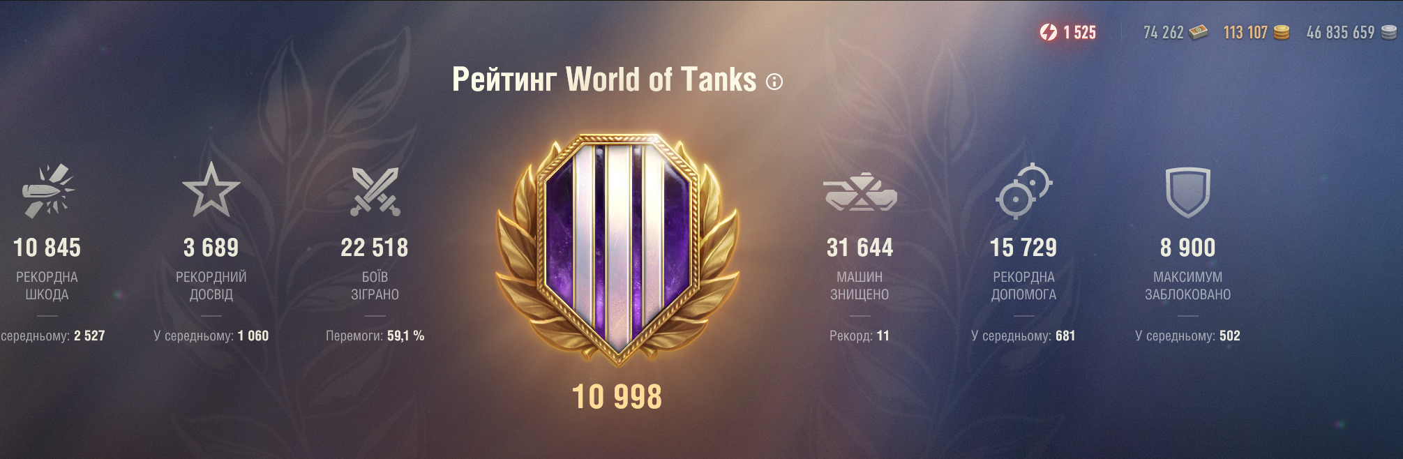 Личный аккаунт статиста, почти 60% побед, три отметки на десятках танков взяты, мастер взят на всех танках в ангаре, выкачаны все 10-ки и есть опыт на все 11лвл. На аккаунте есть все необходимые ресурсы для комфортнойй игры, в частности три года премиум аккаунта, 100 000 + золота и 50+ млн серебра. А так же тысячи бустов, есть танки за ГК. И кому важны понты 11 000 рейтинга. В аккаунт вложено за все время больше 5000 евро