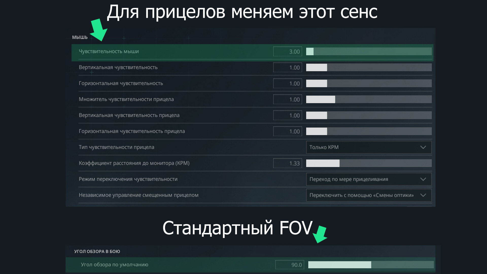 Кратности прицелов и чувствительности в игре:
