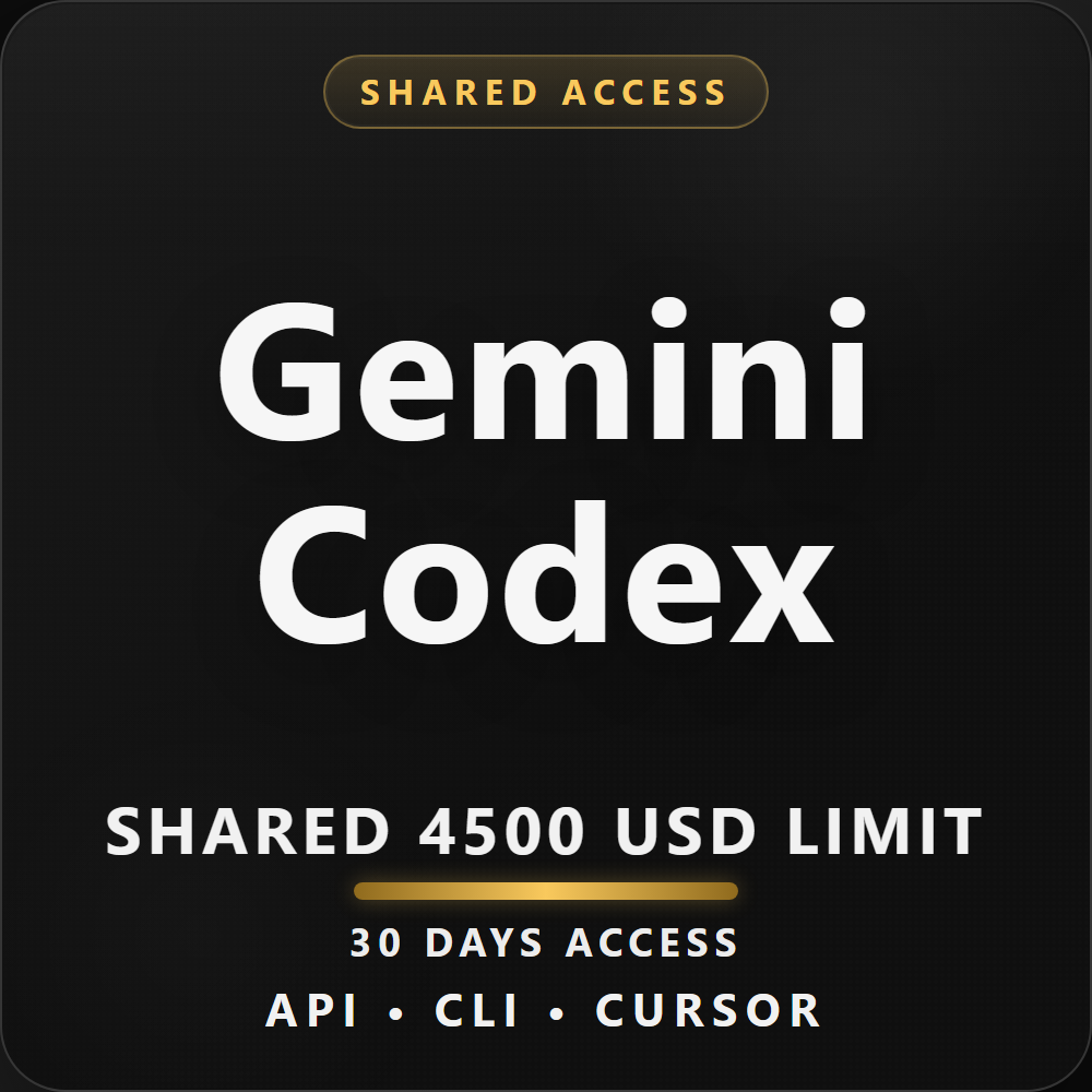 Codex, Gemini, Codex CLI, Gemini CLI, Codex API, Gemini API, Cursor, Cursor IDE, API key, proxy api, gpt-5.4, gpt-5.3, gpt-5.2, gpt-5.1, gpt-5, gpt-5.3-codex, gpt-5.3-codex-spark, gpt-5.2-codex, gpt-5.1-codex, gpt-5.1-codex-max, gpt-5.1-codex-mini, gpt-5-codex, gpt-5-codex-mini, gemini-3.1-pro-preview, gemini-3-pro-preview, gemini-3-flash-preview, gemini-2.5-pro, gemini-2.5-flash, gemini-2.5-flash-lite, AI coding, code assistant, IDE AI, лимит 4500 USD