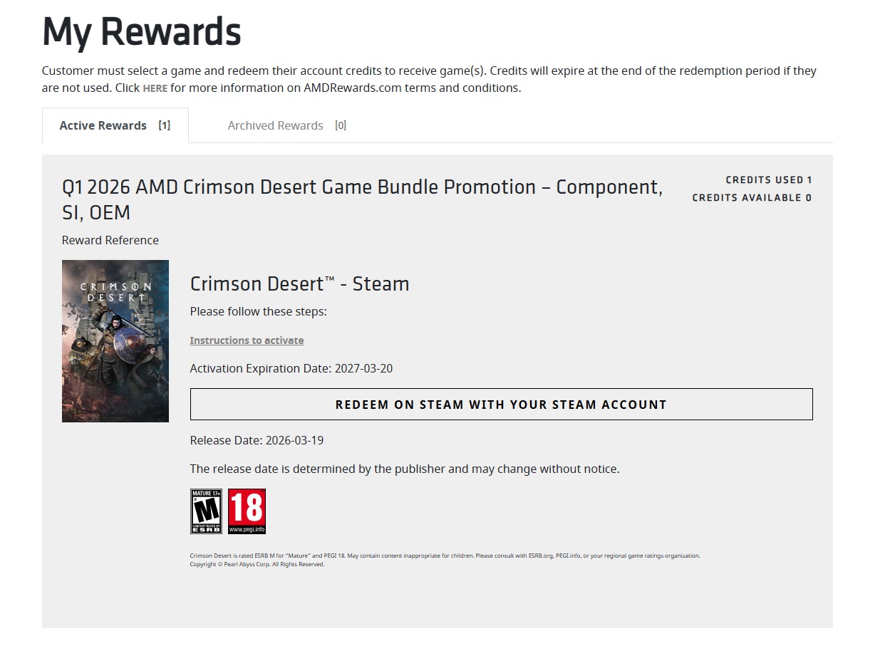 🔑 Тип активации: AMD Rewards