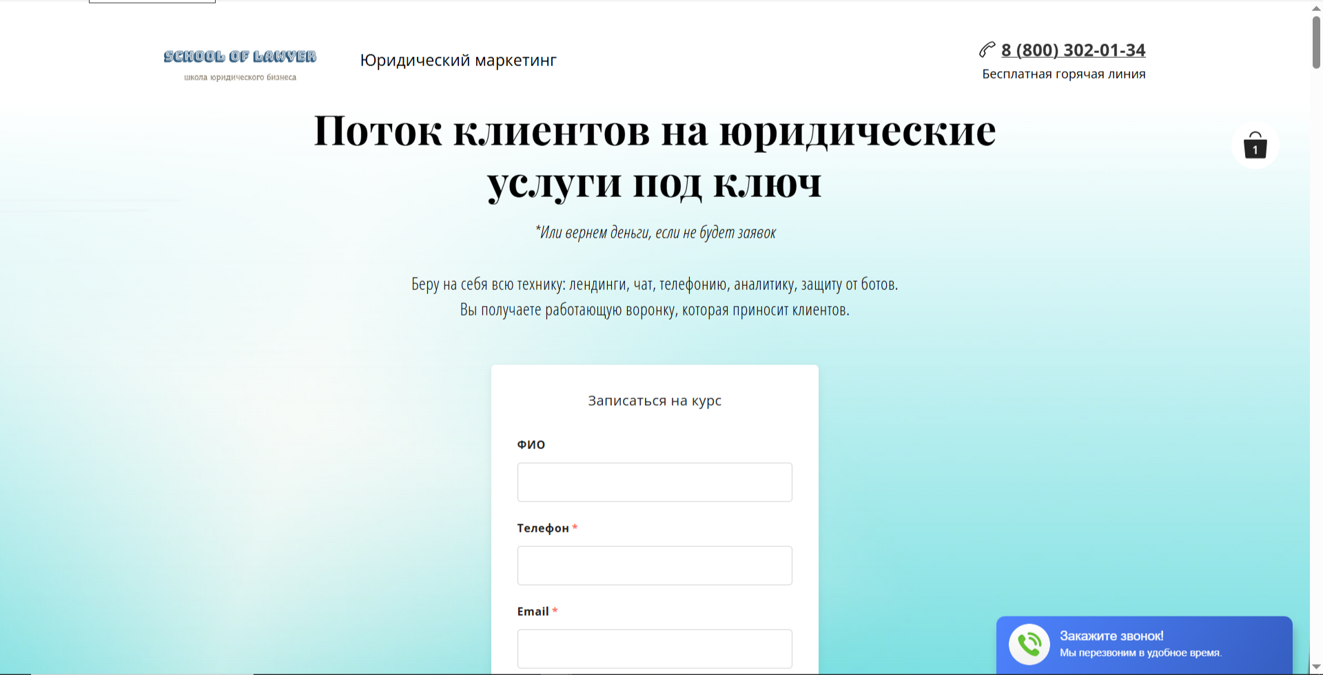 Лендинг под ключ — готовый сайт, который конвертирует посетителя в заявку. Тексты уже адаптированы под юридическую тематику.