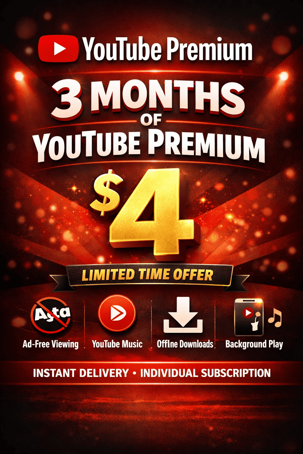 🎬 YouTube Premium — 3 месяца (90 дней) | Обновление аккаунта или новый аккаунт | Мгновенная доставка