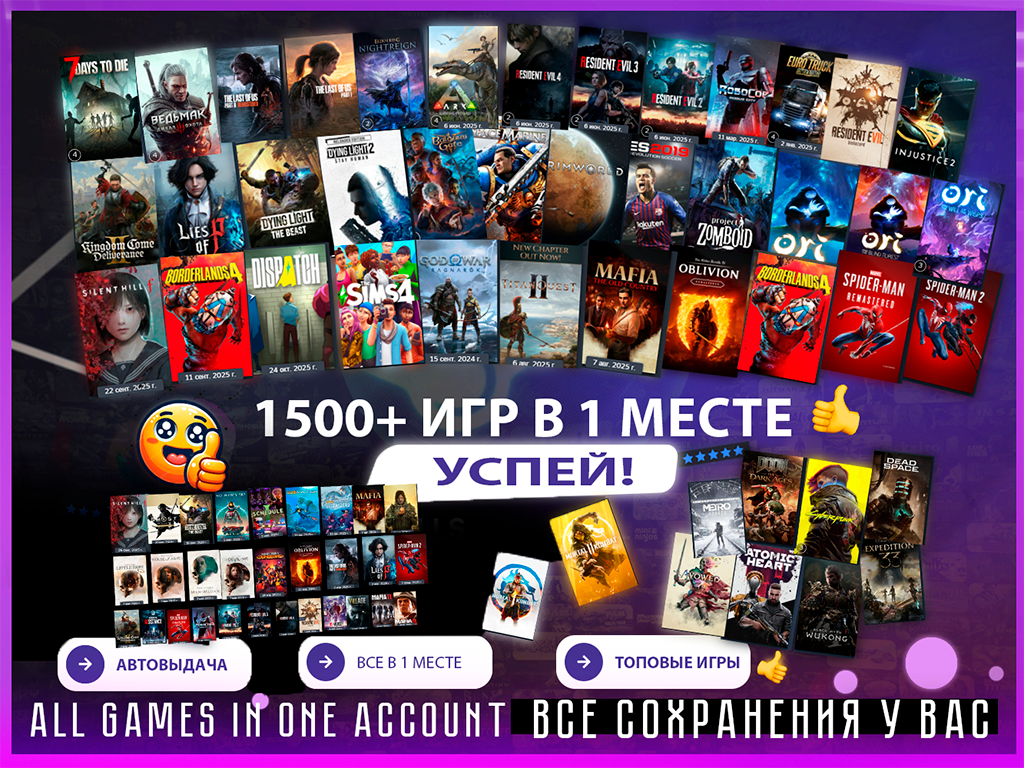 🔥НА АККАУНТЕ БОЛЕЕ 1500+ ИГР И ВСЕ В 1 МЕСТЕ, ОЧЕНЬ МНОГО ТОПОВЫХ ИГР! — ОЧЕНЬ УДОБНО и подходит для ПК, Steam-деск и других приложений с Steam Resident Evil Requiem , Ведьмак, The last of Us Part I and II Remastered , Ghost of Tsushima , Baldur Gate 3, Beyond, Black Myth Wukong, Borderlands 2-3-4, Call of Duty - Black Ops and Advanced Warfare, Dark Souls (II - III - Remastered ) Dead Cells , Dead Space ( I , II ) , Death Stranding, Detroing become human, Doom ( Eternal - Dark Ages ) Dispatch , Final Fantasy XVI, Hellblade, Hitman ( I , II ) , Kingdom Come ( I , II ) Lies of P, Mafia ( II , the old country) spider man remastered, spider man 2, metro exodus + redux, Mortal Kombat 1 ( + 11 ) , Sekiro, Silent Hill f, Oblivion, Skyrim, The escapists ( I , II )