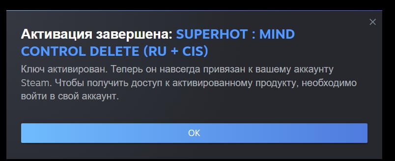 После оплаты данного товара вы получите лицензионный ключ от "SUPERHOT: MIND CONTROL DELETE (Steam/RU+CIS)" для активации в системе "Steam". Ключ отобразится на странице вашего браузера после оплаты.