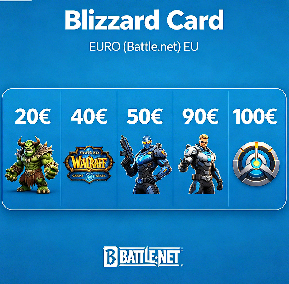 ## 🔑 Описание продукта Карта пополнения счета Blizzard Battle.net Euro быстро и безопасно пополняет ваш баланс для покупки игр Blizzard, DLC, внутриигровой валюты и подписок.