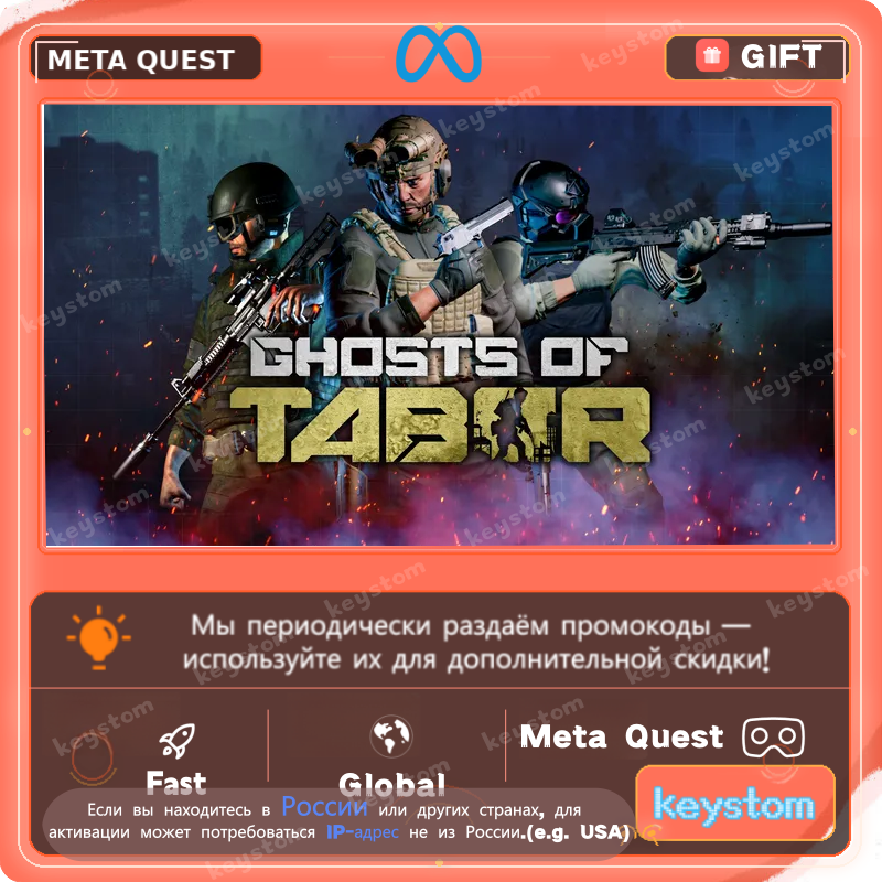 Ghosts of Tabor представлен в Meta Store как hard-core extraction-based VR FPS PvPvE survival game, где игрок должен использовать свои навыки, тактику и ресурсы, чтобы выжить. Игра позиционируется как напряжённый survival shooter с extraction gameplay.