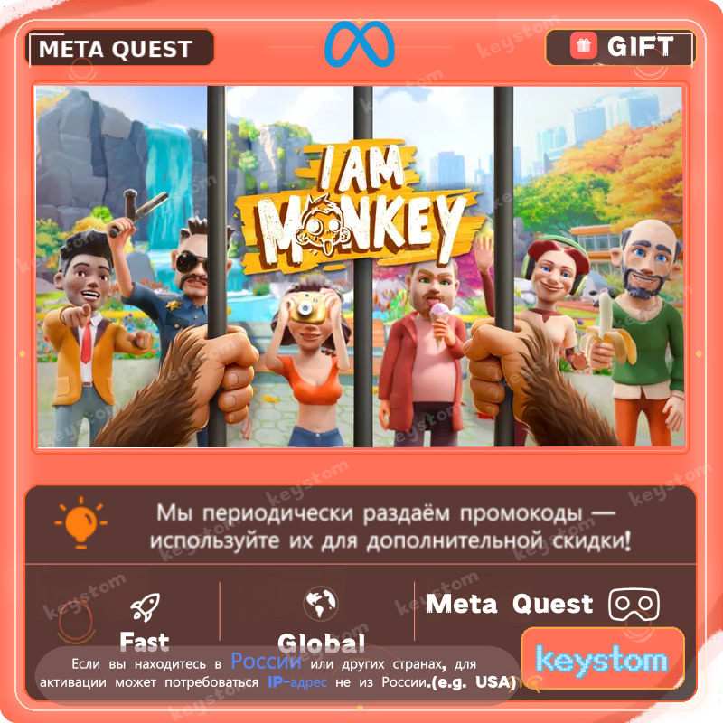 I Am Monkey представлен в Meta Store как VR-игра, действие которой разворачивается внутри клетки зоопарковой обезьяны, а пространство зоопарка превращается в интерактивную площадку. В текущих списках Meta Store игра также отмечена как проект в жанрах Sandbox / Simulation и имеет статус Early Access.