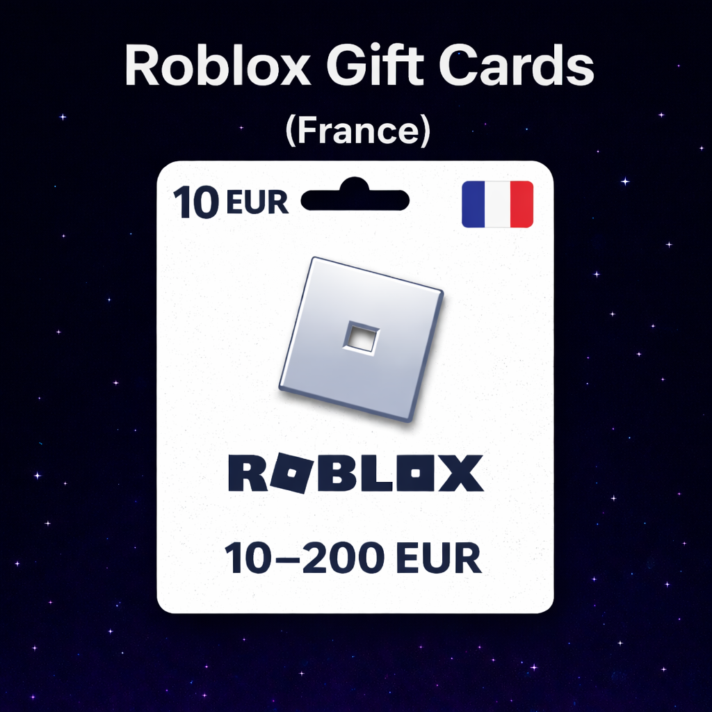 Подарочную карту Roblox номиналом от 10 до 200 EUR (Франция) — выберите нужную сумму при покупке.