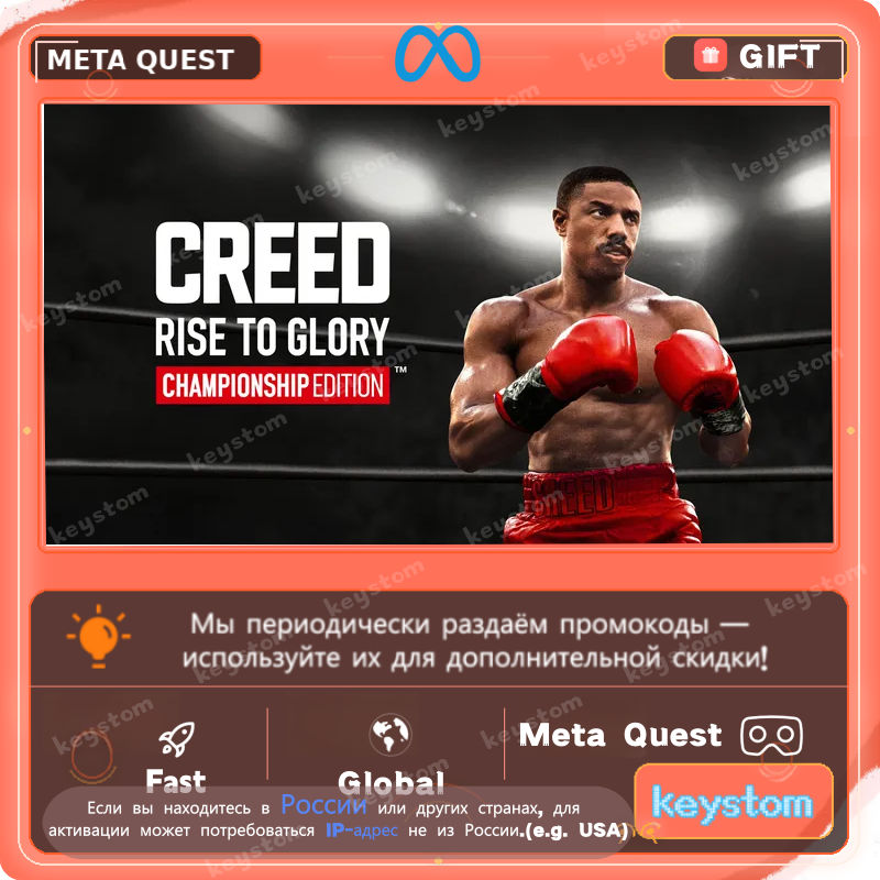 Creed: Rise to Glory - Championship Edition™ представлен в Meta Store как чемпионское издание боксерского VR-проекта по вселенной Creed. Магазин относит его к числу популярных fighting / sports-тайтлов на Quest.