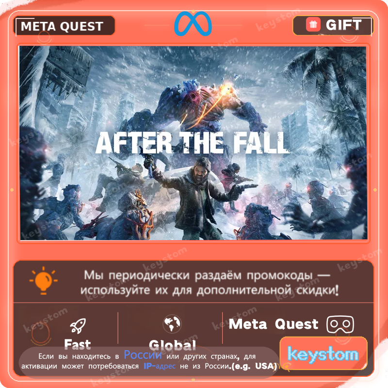 After the Fall® представлен в Meta Store как VR-шутер про зомби-апокалипсис, созданный специально для виртуальной реальности. В текущем описании магазина отдельно подчёркивается кооперативная игра с участием до 3 других выживших против орд нежити.
