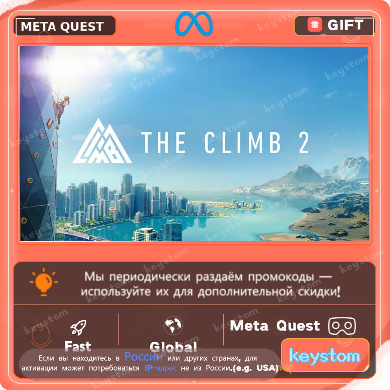 The Climb 2 представлен в Meta Store как VR-опыт скалолазания с новым городским окружением, новыми картами, событиями, пещерами и вертикальными маршрутами.