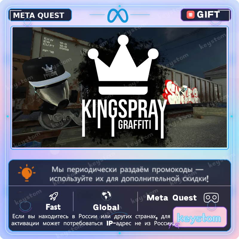 Kingspray Graffiti представлен в Meta Quest как реалистичный VR-симулятор граффити с упором на технику распыления краски, уличные стили и свободное творчество.