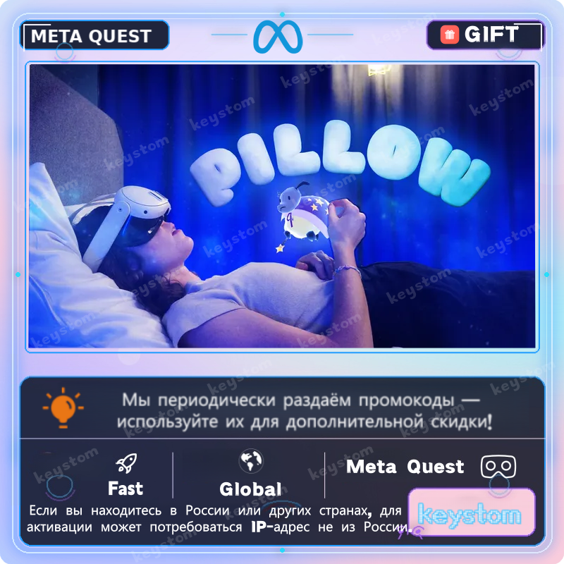 Pillow представлен в Meta Quest как иммерсивное приложение, специально созданное для использования лёжа, позволяя расслабляться в кровати через четыре интерактивных dream-опыта в mixed reality.