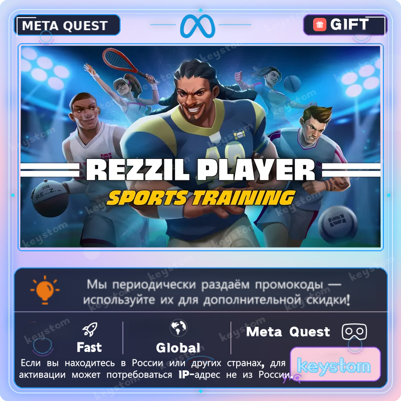 Rezzil Player: Sports Training представлен в Meta Quest как приложение для домашних спортивных тренировок, а текущий листинг магазина отдельно подчёркивает 160+ уровней и 40 спортивных предметов.