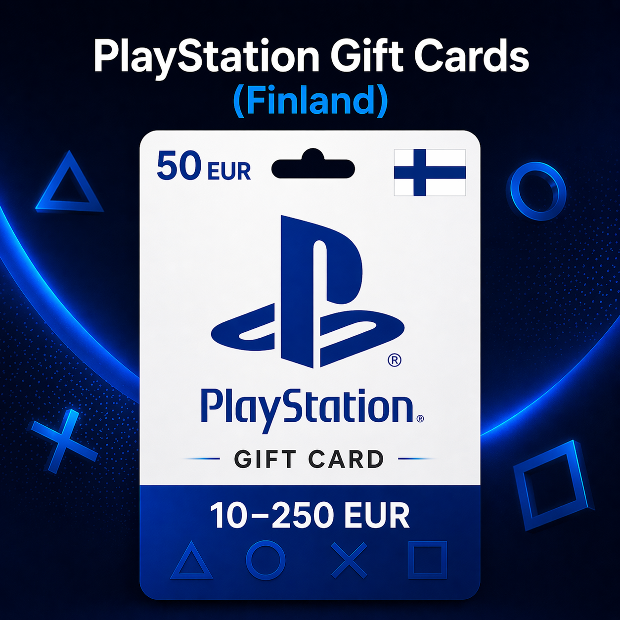 Подарочную карту PlayStation Finland номиналом от 10 до 250 EUR — выберите нужную сумму при покупке.