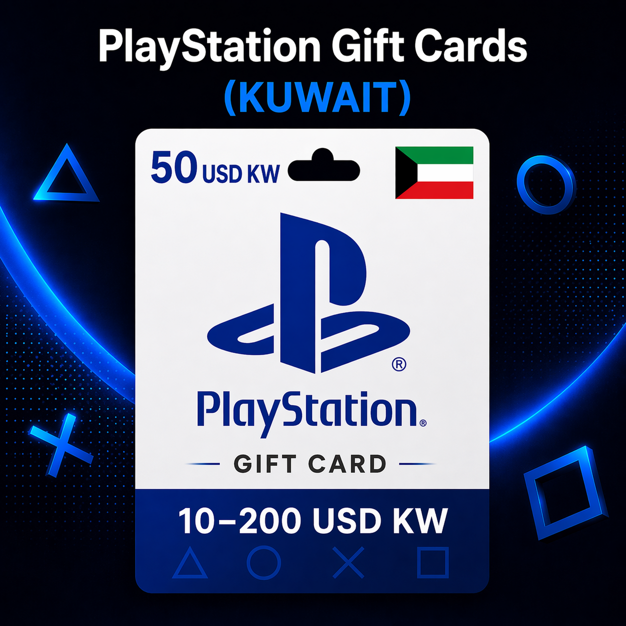 Подарочную карту PlayStation Kuwait номиналом от 10 до 200 USD — выберите нужную сумму при покупке.
