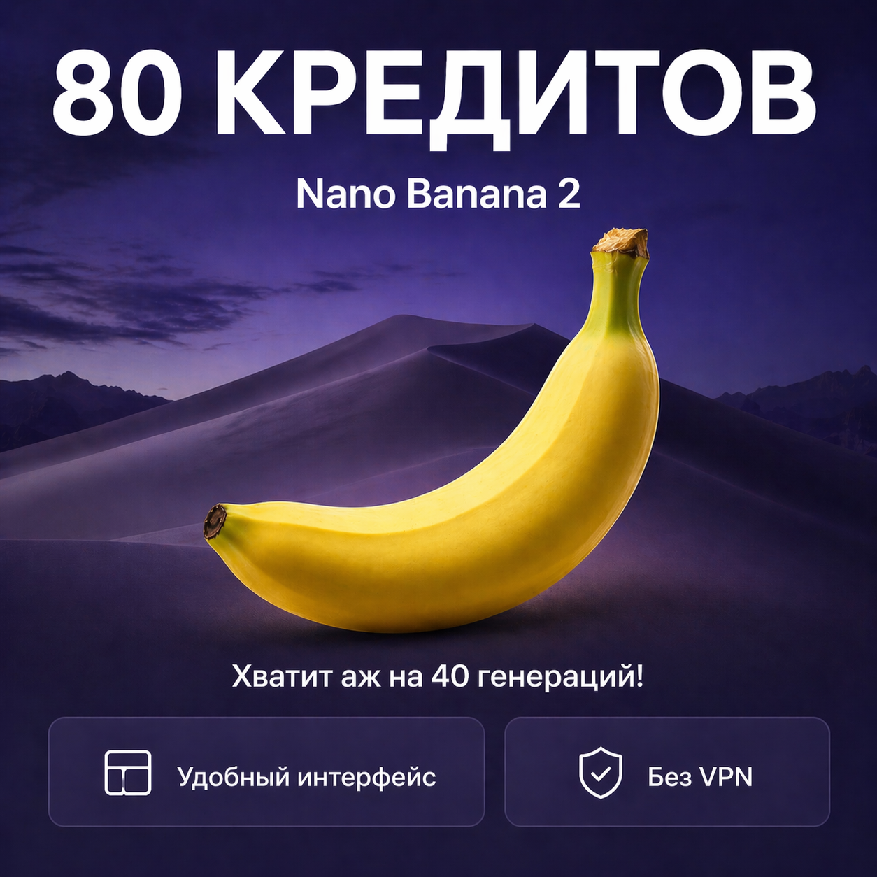 Пакет «NB2 Старт» — это идеальный баланс цены и объема. Вы получаете солидный запас генераций в официальной модели Nano Banana 2 без ежемесячных подписок и скрытых условий. Платите только за то, чем реально пользуетесь!